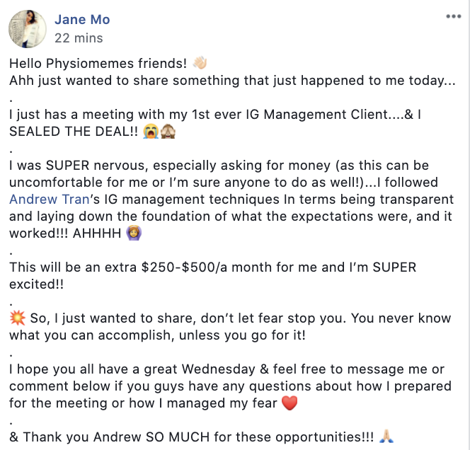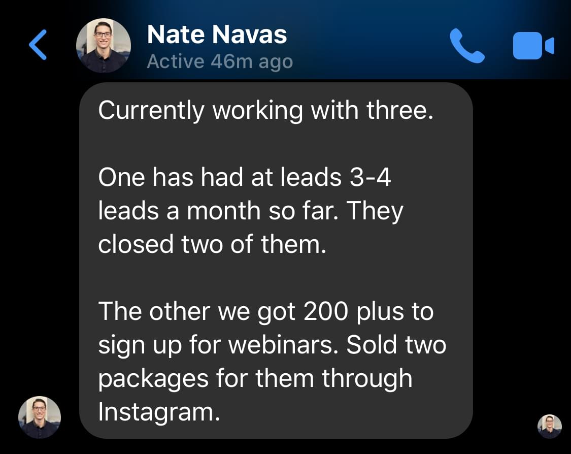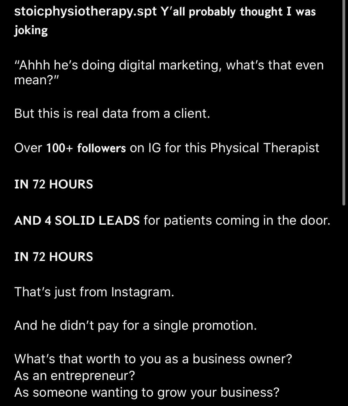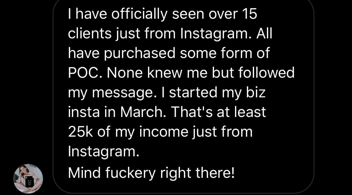 After a few weeks of working with the first group of people, I saw people who just started their Instagram account having their first leads with less than 100 followers, their first patient with